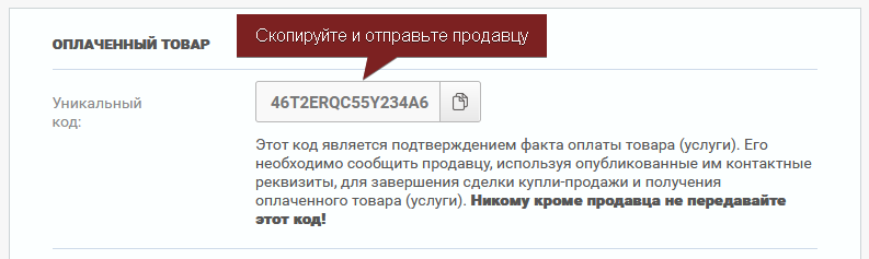 2. send the UNIQUE CODE to the seller
