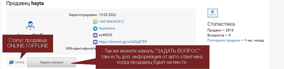 As we can see from the image below ⬇️ the seller's status on the site is now ONLINE and we can quickly contact him, using the "Ask a question" button