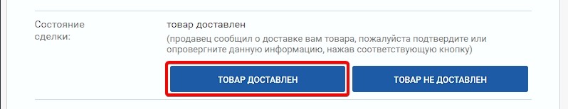 Не забудьте после завершения сделки подтвердить, что вы получили товар путем нажатия кнопки "ТОВАР ДОСТАВЛЕН".